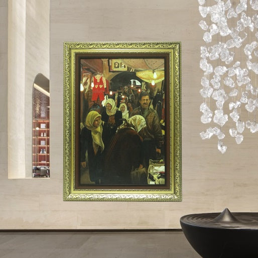 Frame Color: Antique Gold with carved embellishment dark brown wooden mat